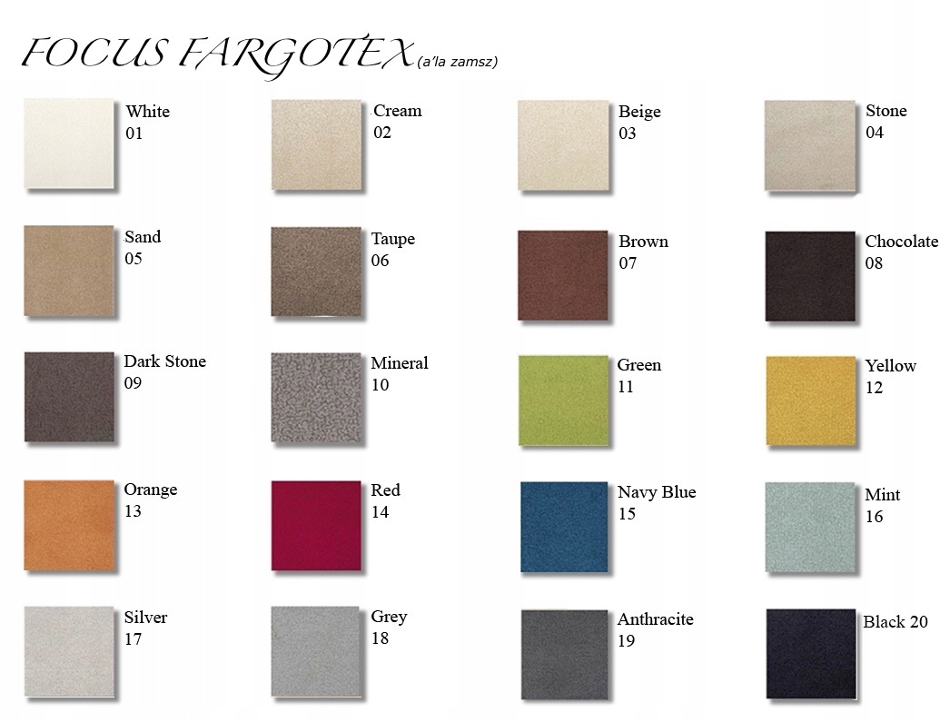 Мягкое сиденье изготовлено из высококачественного, устойчивого к загрязнениям и легко чистящегося материала Focus. ткань Фарготекс. Фокус — идеальная ткань для дома, где есть дети и домашние животные. Высота сиденья целых 9,6 см.