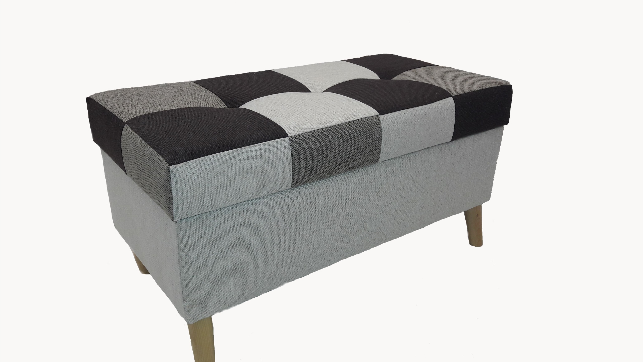ПУФ ИМЕЕТ 4 НОЖКИ, УГЛОВЫЕ ИЛИ ПРЯМЫЕ, НАТУРАЛЬНЫЙ ЧЕРНЫЙ ЦВЕТ, БЕЛЫЙ ИЛИ КОРИЧНЕВЫЙ (ПОЖАЛУЙСТА, УКАЖИТЕ ИНФОРМАЦИЮ В ПРИМЕЧАНИИ ДЛЯ ПРОДАВЦА), И РЕМЕНЬ, КОТОРЫЙ УДЕРЖИВАЕТ КРЫШКУ.