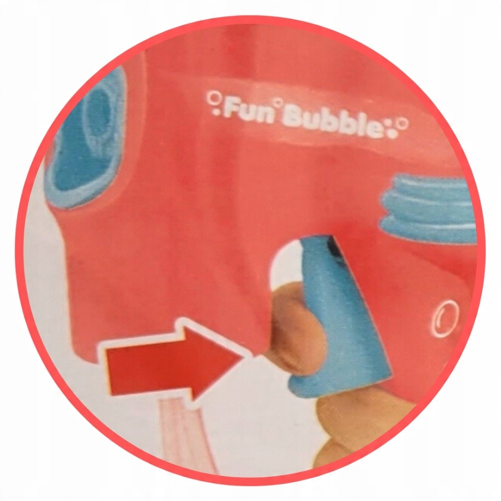 GUN работает по принципу трения. После нажатия кнопки ребенок запускает фонтан пузырьков. Повторное нажатие вызывает еще один взрыв пузырьков и так до бесконечности :)