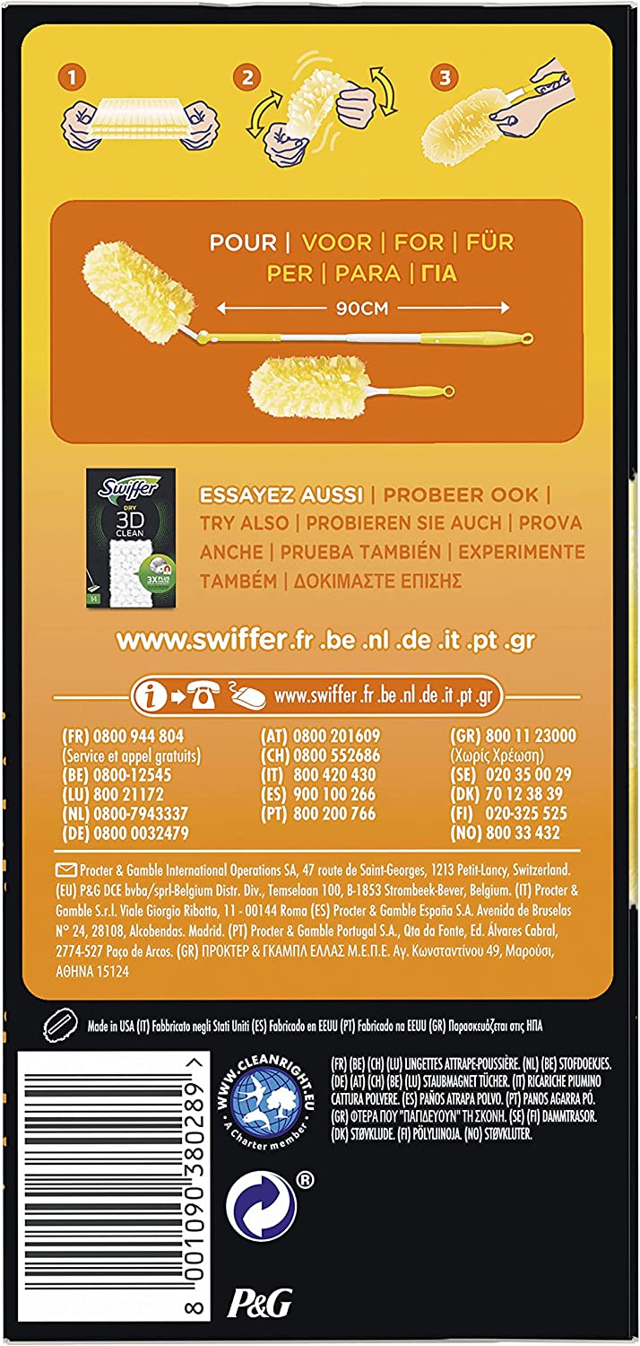 Стержни Swiffer Duster 360°, 10 шт. Вставки Swiffer Duster удерживают пыль, шерсть и аллергены пылевых клещей, кошек и собак. Они сохраняют их благодаря слегка покрытым пушистым волокнам. Салфетки Swiffer имеют уникальные волокна, которые меняют форму. Благодаря этому вы сможете добраться до самых труднодоступных мест и удалить пыль и шерсть практически с любой поверхности, не разбрасывая их по всему дому. Пыль всегда возвращается, поэтому вам нужно потратить как можно меньше времени и усилий на ее удаление. Эти салфетки являются незаменимым элементом в каждом доме, квартире,...