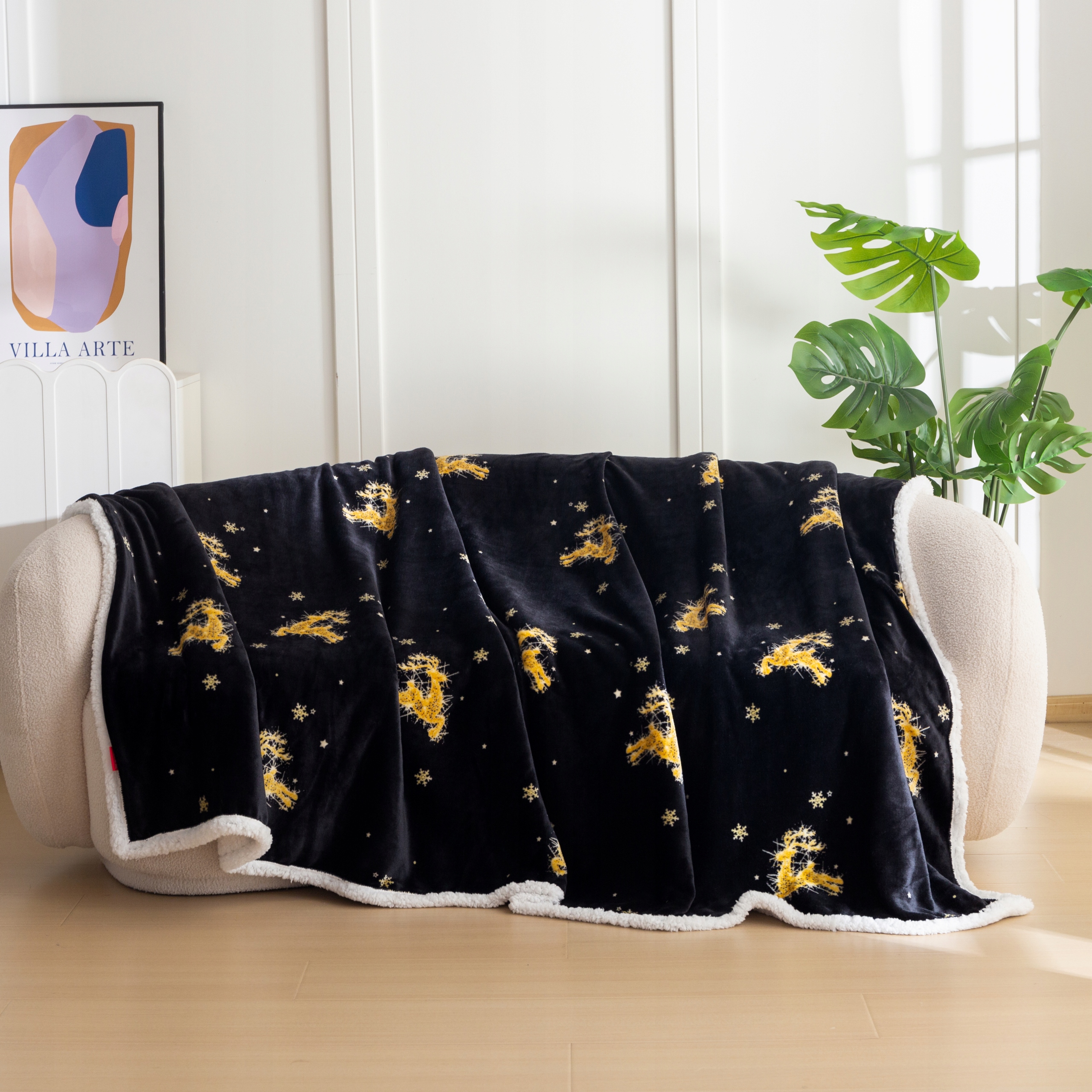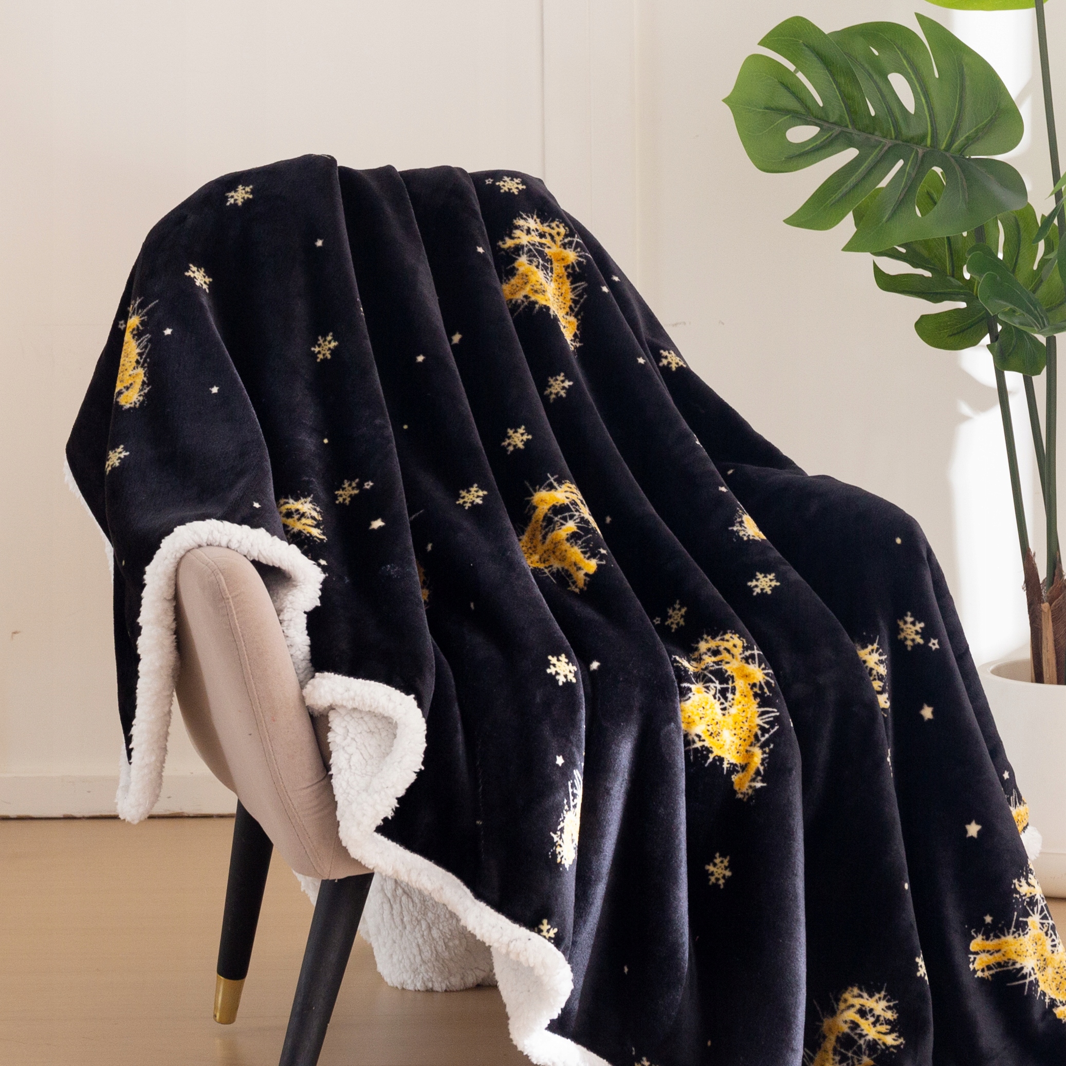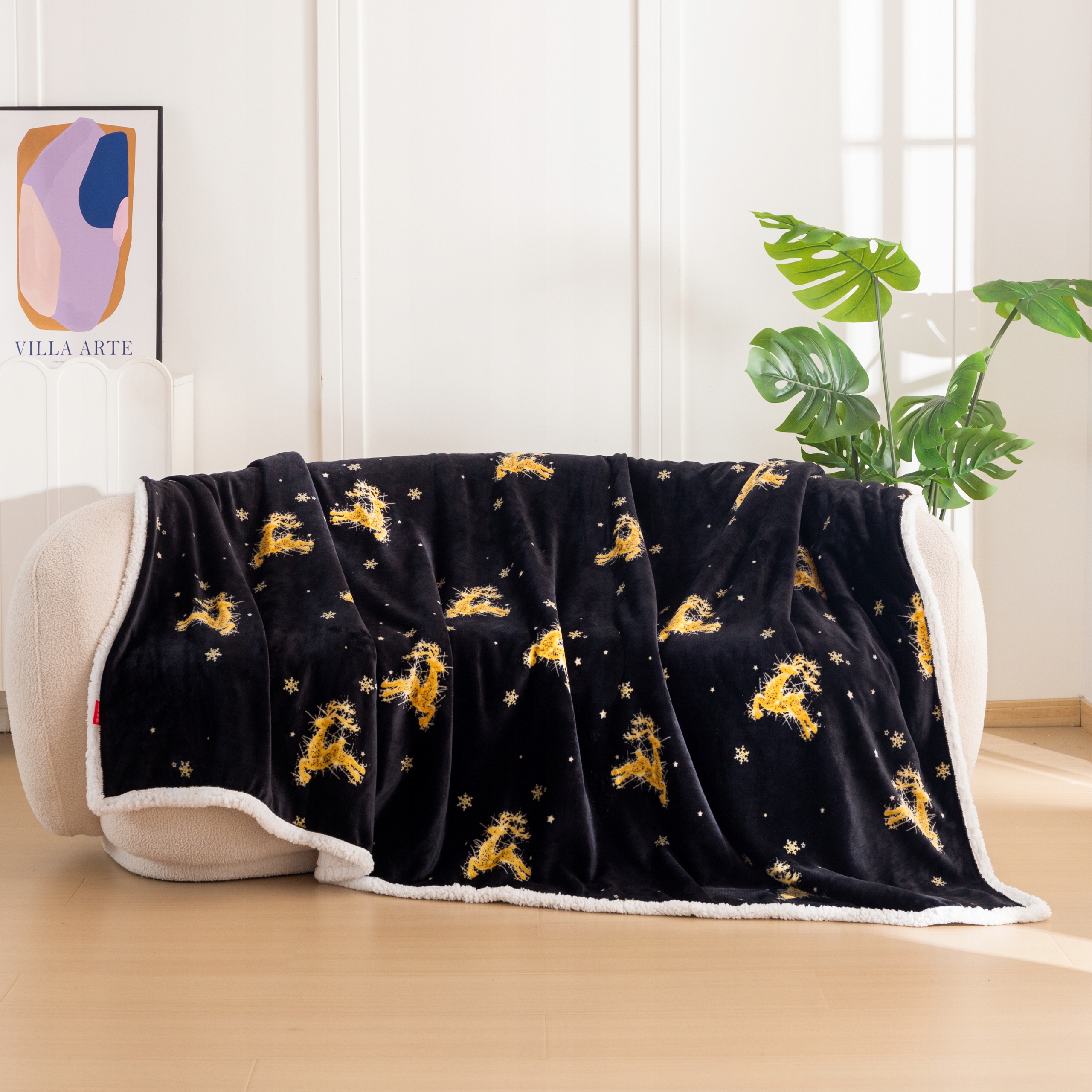 Пушистый новогодний плед 160х200 Золотой Christmas Reindeers ЧЕРНЫЙ/ГРАФИТ