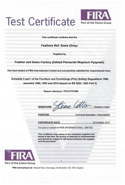 Наша фабрика — одна из немногих в Польше, которая имеет перья и пух, сертифицированные RDS.