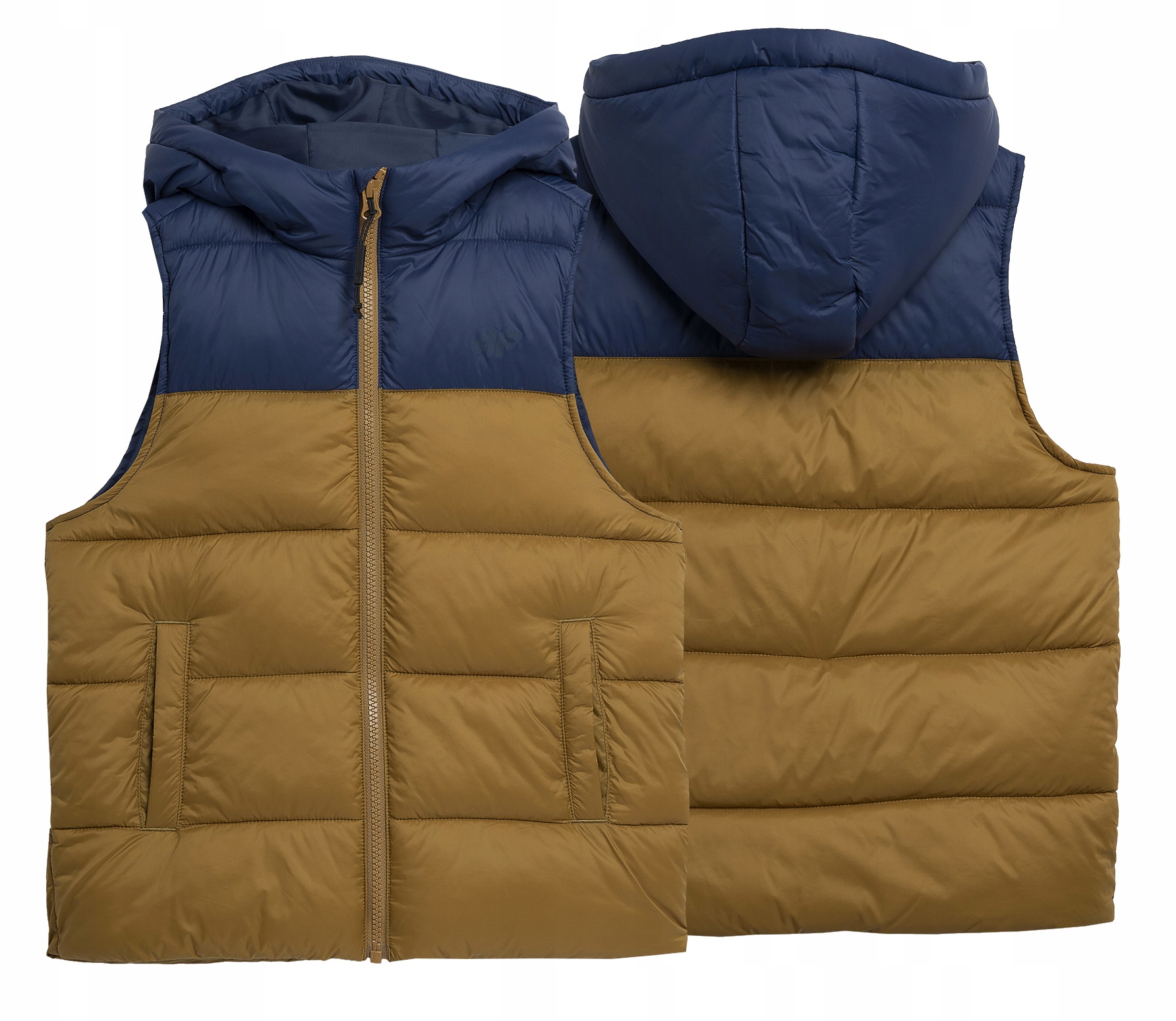 Стеганый пуховый жилет с капюшоном для мальчиков из последней коллекции 4F. Наполнен синтетическим пухом, который в сочетании с технологией 4Warm обеспечивает тепловой комфорт в холодные дни. Внешний материал покрыт гидрофобным покрытием, которое защитит куртку от влаги.
