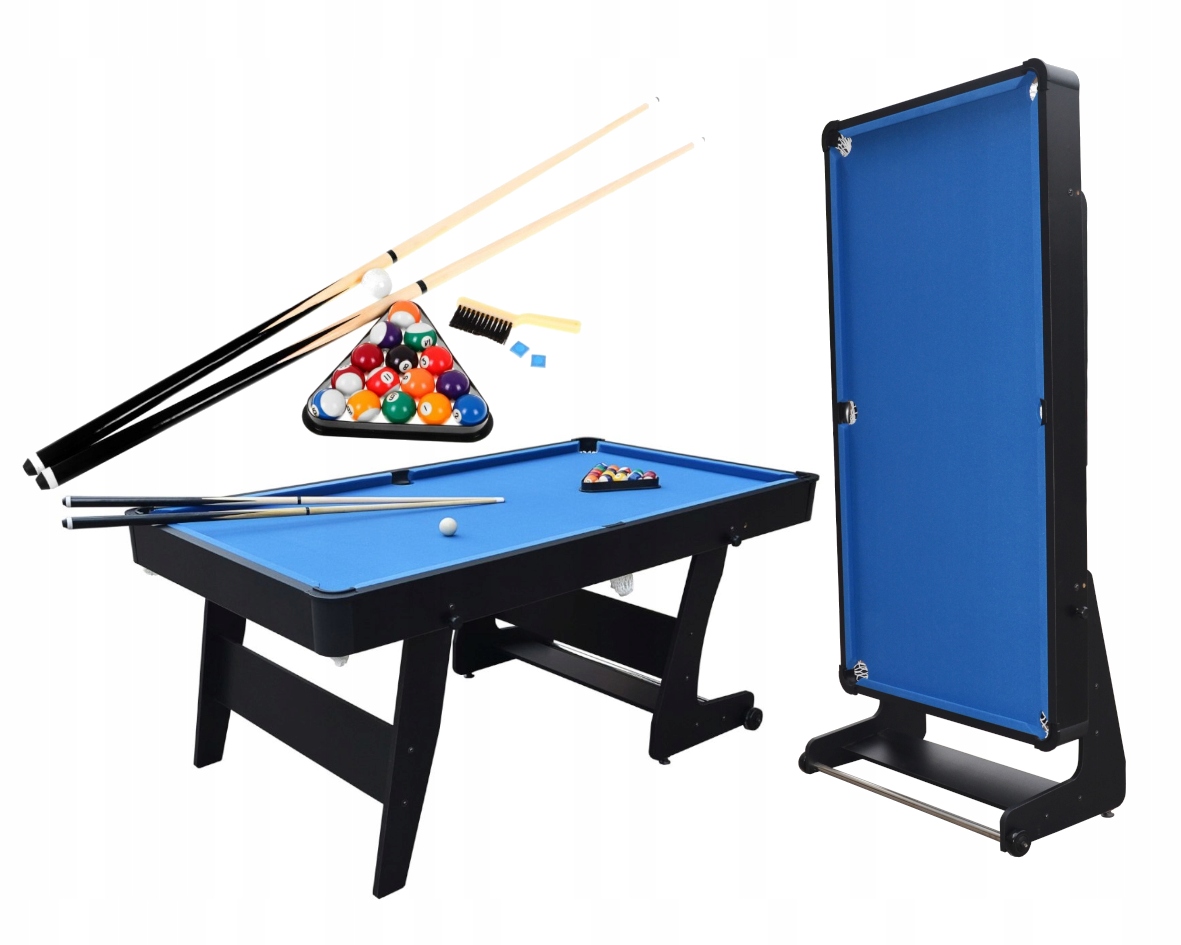 - стол имеет функцию складывания вертикально - благодаря чему стол занимает очень мало места (бильярдный стол имеет фиксатор для стабилизации),