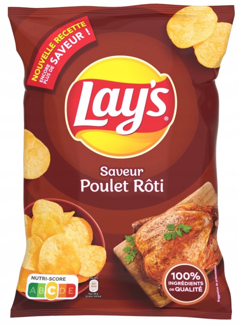 Чипсы Lay были тщательно производились более 75 лет от лучшего картофеля и ингредиентов. Этот бренд признан во всем мире. Французская ветвь Lay's выпустила картофельные чипсы с запеченной куриной ароматом с ароматическими травами. Доступно в большом и более 100G-пакете.