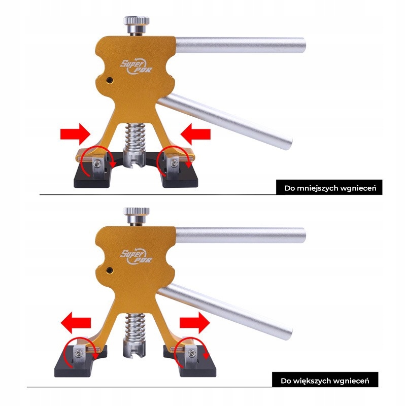 - Съемник можно отрегулировать для удаления как маленьких, так и больших вмятин.
