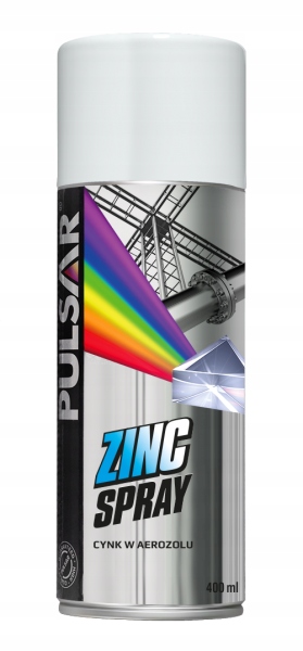 PULSAR ZINC - профессиональное, быстросохнущее серебристое финишное покрытие в аэрозоле. Состав: ЦИНК плюс эпоксидные смолы. Цинковый спрей гарантирует надежную антикоррозионную защиту, обладает отличной адгезией к поверхности и цветом натурального цинка. Цинковый спрей применяется для защиты соединений, сварных швов и сварных швов после механической обработки. Для ремонта поврежденных слоев при цинковании деталей, в качестве самонесущего антикоррозионного или грунтовочного слоя.