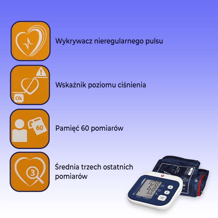 Автоматический тонометр на плече с большим дисплеем и уникальной технологией RAPID TECH, позволяющей быстро и очень точно измерять артериальное давление. Он интуитивно понятен и прост в использовании и работает автоматически с помощью одной кнопки. Он имеет датчик для обнаружения аномального сердцебиения и графический индикатор для отображения уровня артериального давления. Идеально подходит для повседневных измерений и для пользователей, ищущих простые решения.