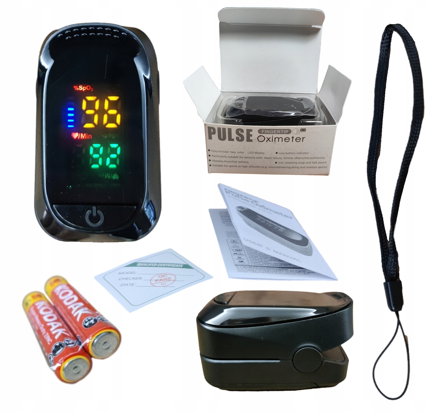 ПУЛЬСОКСІМЕТР НАСИЧЕННЯ СЕРЦЕВОГО РИТМУ НА ПАЛЬЦІ + БАТАРЕЇ + ПОВІДЦЬ Оригінальний SpO2