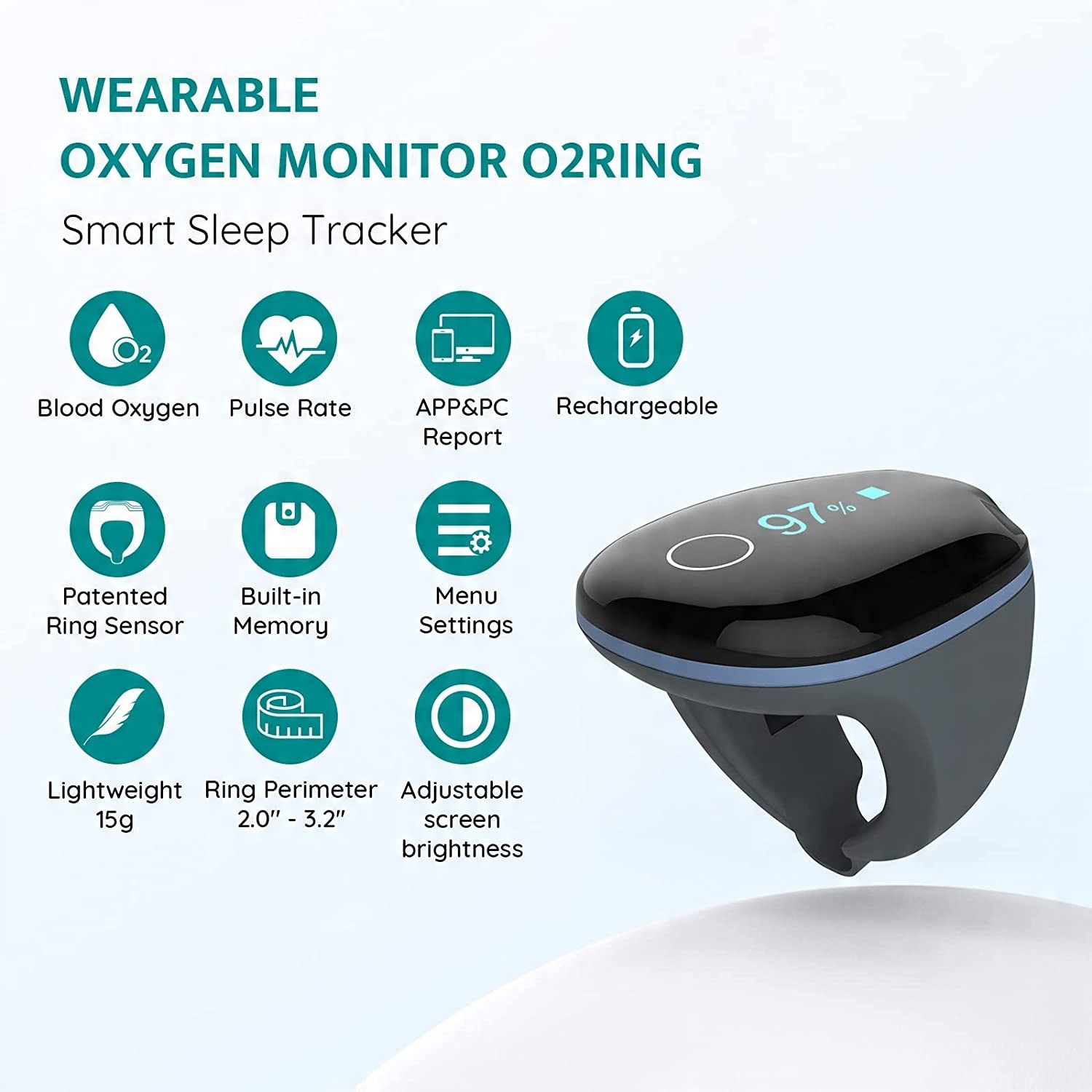 - Удобный и точный: O2RING O2Ring Oxygen Monitor использует ту же технологию оксимметрии передачи, которая заслуживает доверия для больниц и клиник. Кольцо медицинского класса обеспечивает лучший опыт при ношении и без демпфирования, оно полностью освободит ваш палец!
