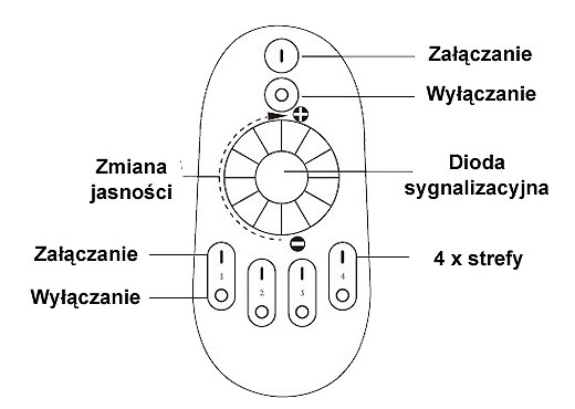 Пульт дистанционного управления позволяет управлять освещением от 1 до 4 независимых светодиодных зон. К одной зоне на пульте можно подключить множество цепей освещения.
