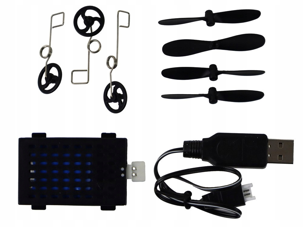 В комплект также входят четыре сменных пропеллера и кабель для зарядки аккумулятора.