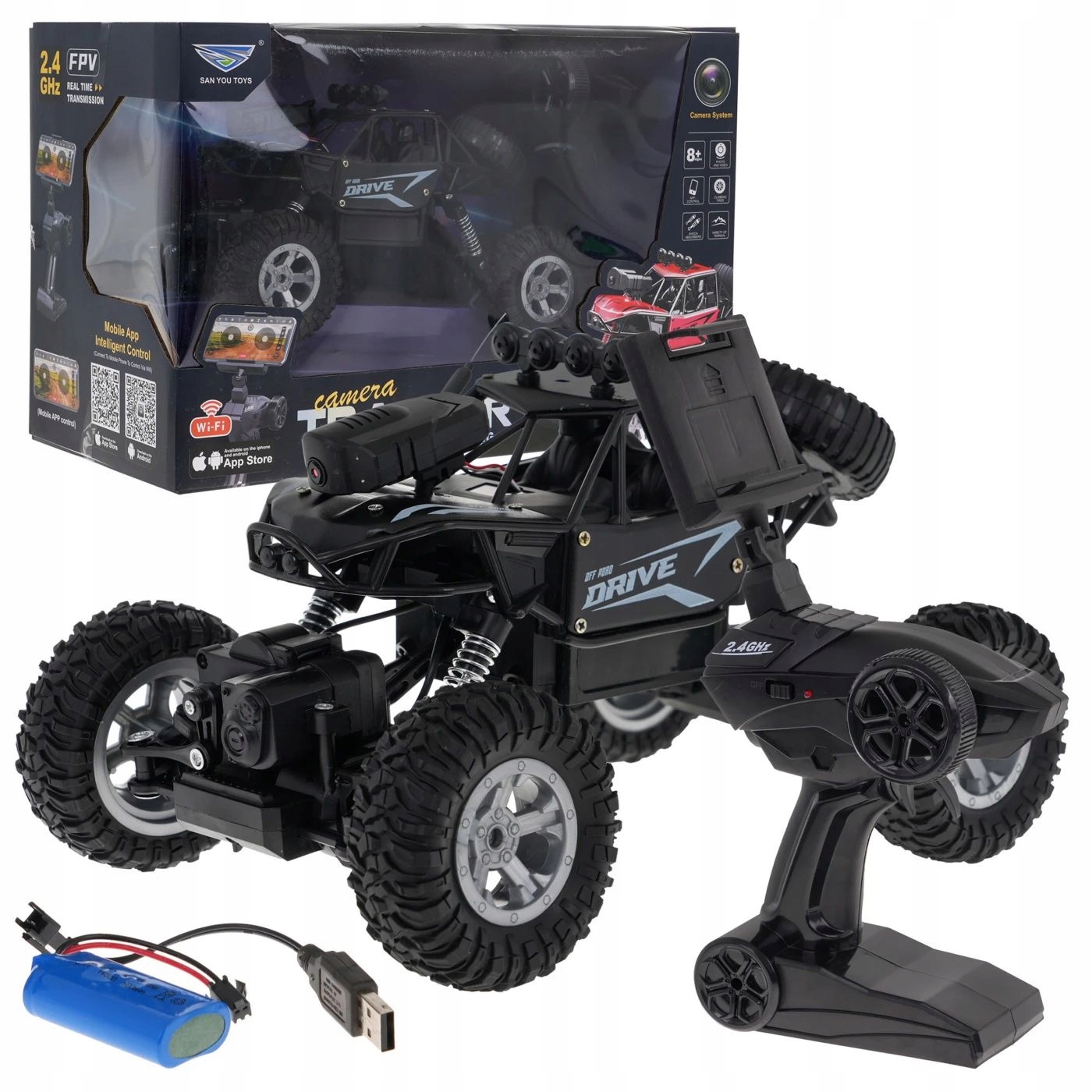 Машина с дистанционным управлением и камерой в комплекте - предложение для детей от 8 лет. Автомобиль идеален для езды по бездорожью, независимо от покрытия – песок, грязь, камни для него не помеха. Резиновые, широкие шины позволяют машине идеально прилегать к земле. Он имеет легкую конструкцию, изготовлен из прочных материалов высочайшего качества и очень прост в эксплуатации. Автомобиль оснащен Wi-Fi камерой высокого разрешения. Скачав приложение, вы сможете следить за предварительным просмотром камеры в режиме реального времени. Фотографии и видео хранятся на телефоне и могут воспроизводиться повторно. Автомобиль питается от батарейки 3,7 В (входит в комплект), пульт дистанционного управления — от 3 батареек типа АА (не входят в комплект).