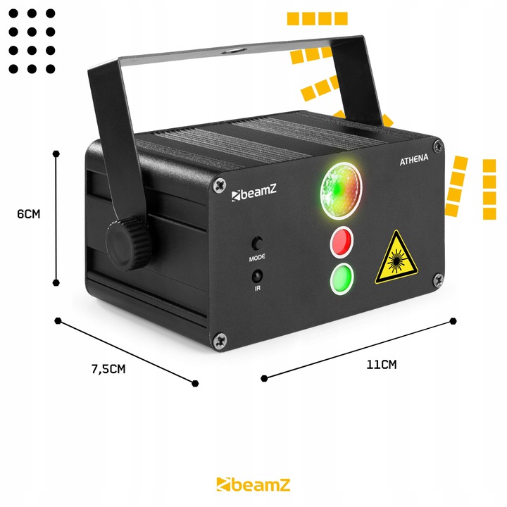 Этот лазер для вечеринок со встроенным аккумулятором можно использовать где угодно, поэтому вы действительно можете устроить вечеринку, где бы вы ни находились. Афина оснащена красным и зеленым лазером, который отображает множество движущихся фигур и узоров. Чтобы добавить красок вашей вечеринке, Athena оснащена ярким светодиодом RGB. Сочетание двух лазеров и светодиодной подсветки создает праздничную атмосферу, где бы вы ни находились.