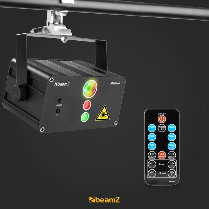 Не обязательно быть техническим специалистом, чтобы насладиться возможностями диско-лазера BeamZ Athena. С помощью прилагаемого пульта ДУ вы легко сможете выбрать программу или активировать один из режимов звуковой активации. Афина может работать совершенно независимо, поэтому вам не о чем беспокоиться и вы можете полностью сосредоточиться на вечеринке и своих гостях.