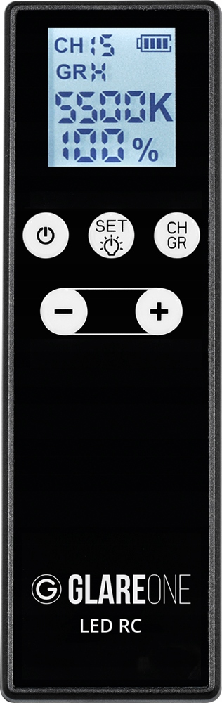 Все светодиодные лампы Glareone оснащены радиоприемником, совместимым с пультом дистанционного управления RC, что означает, что можно изменить как яркость света, так и его цветовой температурой. Кроме того, дистанционное управление поддерживает 16 каналов связи и до 10 групп ламп. Это особенно полезно, когда вы используете обширные наборы освещения или когда доступ к панели управления лампой сложно.