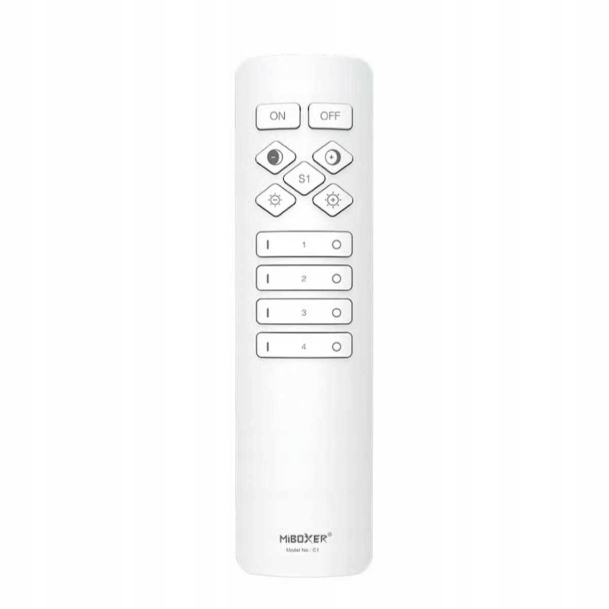 4-зонный пульт дистанционного управления CCT MiBoxer C1, предназначенный для приемников MiBOXER. Он позволяет изменять цветовую температуру и яркость назначенных устройств.