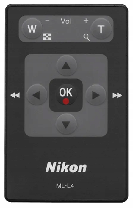 Nikon ML-L4 — это практичный многофункциональный пульт дистанционного управления для использования с фотокамерой COOLPIX S1000pj. Пульт дистанционного управления можно использовать для удаленной съемки фотографий или запуска и остановки записи видео. При использовании встроенного в камеру проектора пульт ML-L4 можно использовать для изменения отображаемых фотографий и видео.