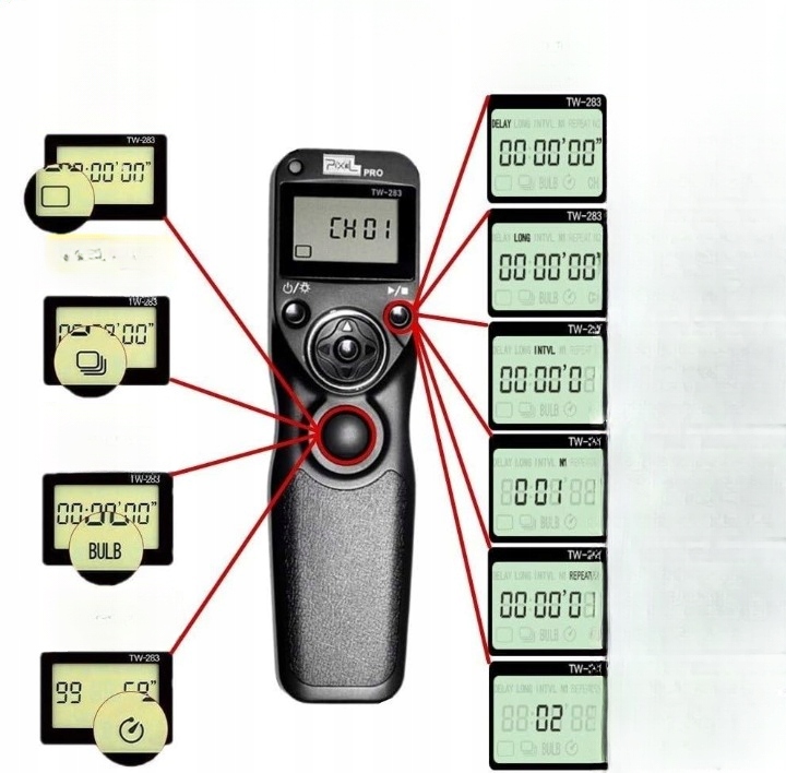 Pixel TW-283 DC2 — надежный инструмент для фотографов, которым требуется точное управление затвором и возможность программировать фотосессии. Благодаря интуитивно понятному интерфейсу, широкому набору функций и прочной конструкции он хорошо подойдет как для пейзажной, так и для студийной фотографии. Совместимость со многими моделями камер Nikon и возможность беспроводной работы делают его чрезвычайно универсальным и практичным решением.