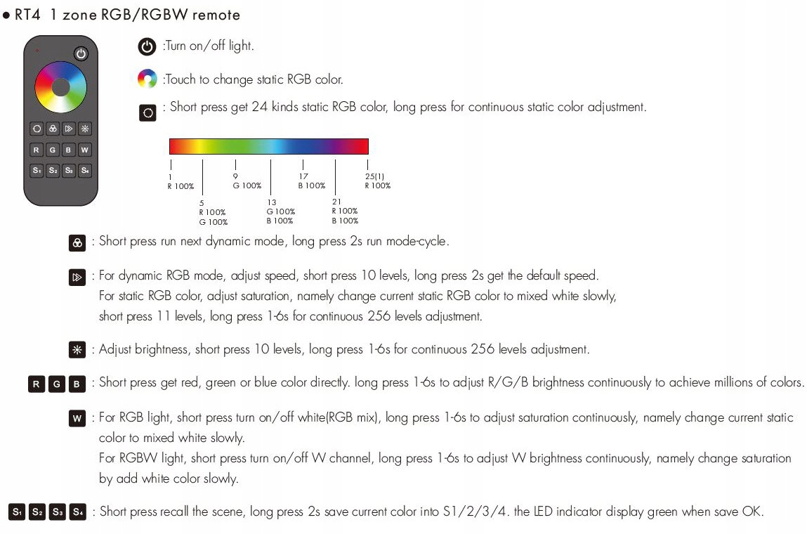 - Вкл./выкл., управление цветом RGB/RGBW.