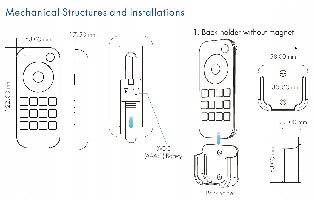- Питание: батарея 3 В постоянного тока (AAAx2).