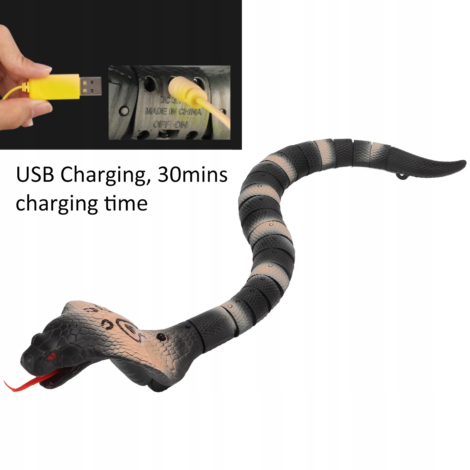 Пульт дистанционного управления Змея Инфракрасное управление Зарядка через USB Выдвижной язык Виляющий хвост Реалистичная ползающая электрическая игрушка-змея