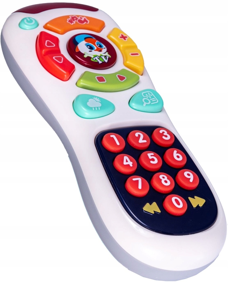 Пульт дистанционного управления телевизором — это игрушка, которая станет отличным способом начать изучать цифры от 0 до 9, основные цвета и формы.
