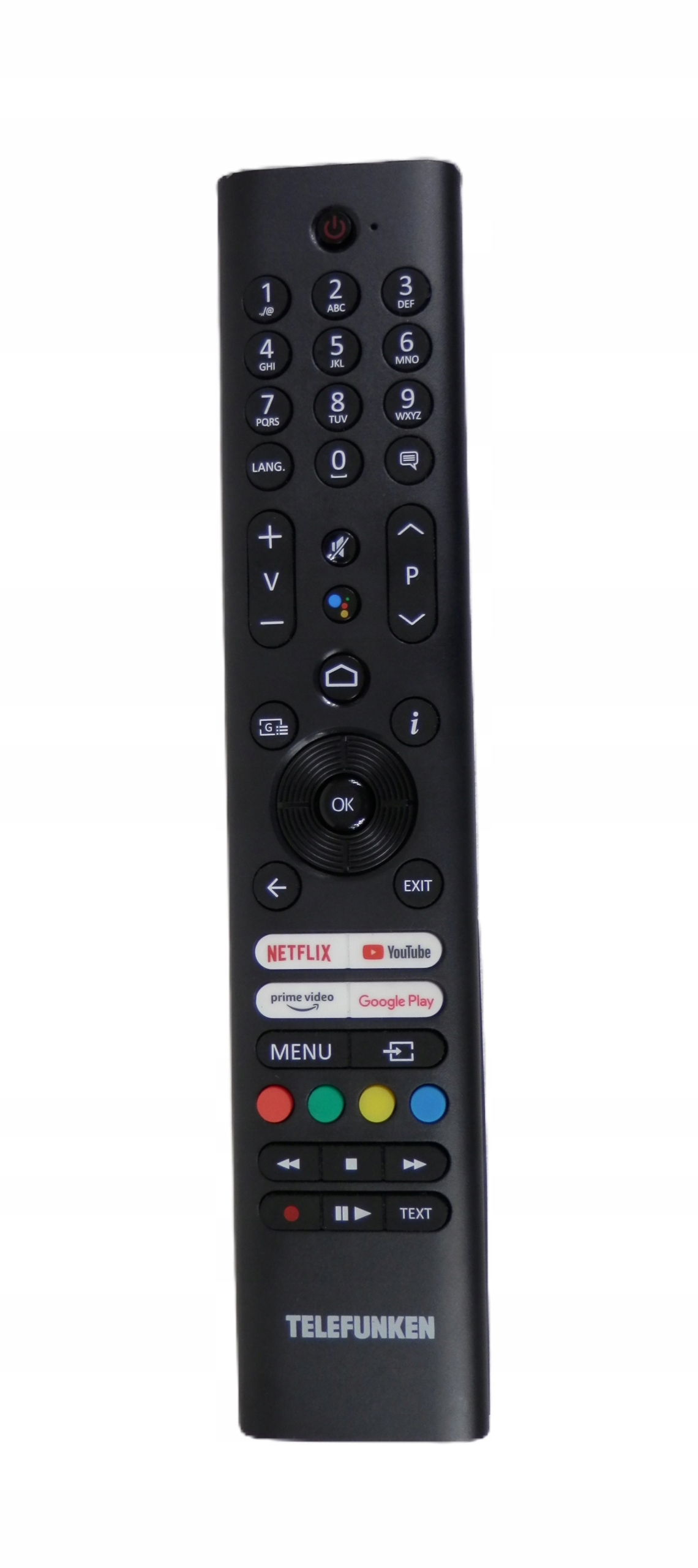 Пульт дистанционного управления, предназначенный для последних моделей телевизоров Telefunken с системой Android TV.
