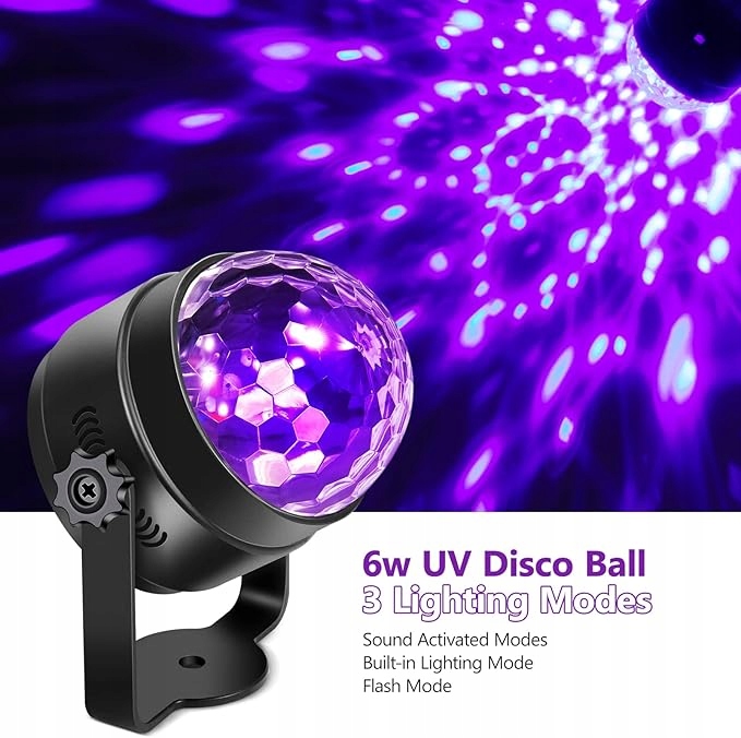 • ♬ Диско-шар, управляемый музыкой: эффективный датчик, активируемый голосом. Диско-шар с черным светом идеально подходит для дня рождения, танцевальной вечеринки, диджея, бара, караоке, Рождества, свадьбы, шоу, клуба, паба, Рождества, Хэллоуина, домашней вечеринки, дома, спальни и всех видов вечеринок. Однако, если вам нужна только светло-фиолетовая лампа, УФ-лампа может быть не лучшим выбором.