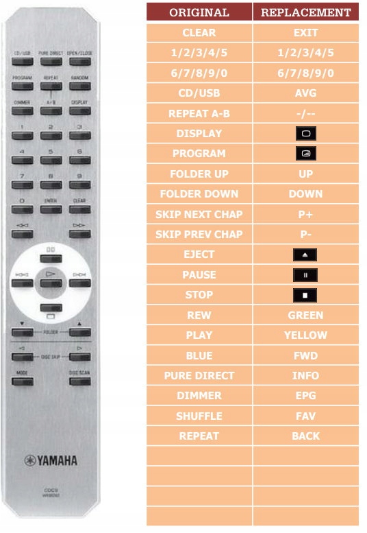 Пульт ДУ запрограммирован кодами YAMAHA CDC9