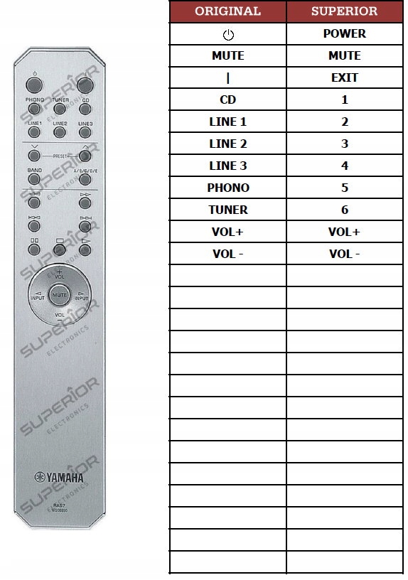 запрограммированный пульт дистанционного управления с кодами YAMAHA