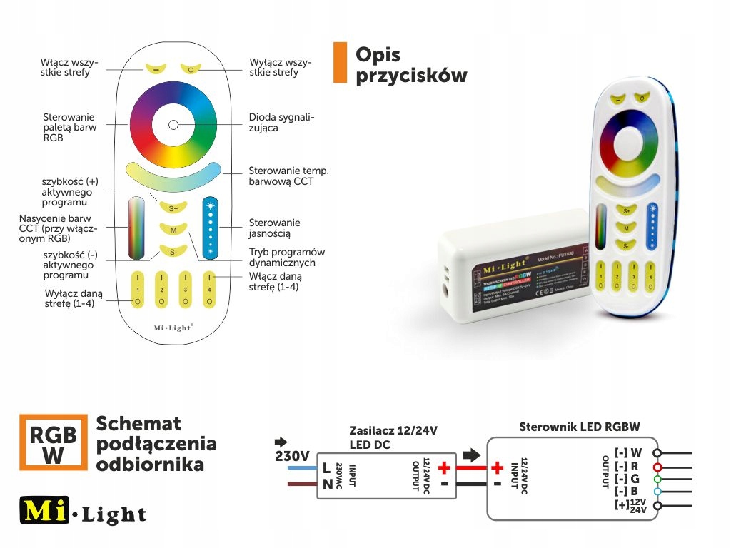 Пульт дистанционного управления может работать со всей серией устройств (ресиверов) серии MiLight. Это могут быть светильники или лампочки, а также любое светодиодное освещение на 12 В, например, светодиодные ленты или светодиодные садовые лампы. С помощью одного пульта мы можем включать и выключать лампочки в холле, потолочное освещение в гостиной или лампы в саду. Возможностей и комбинаций множество...