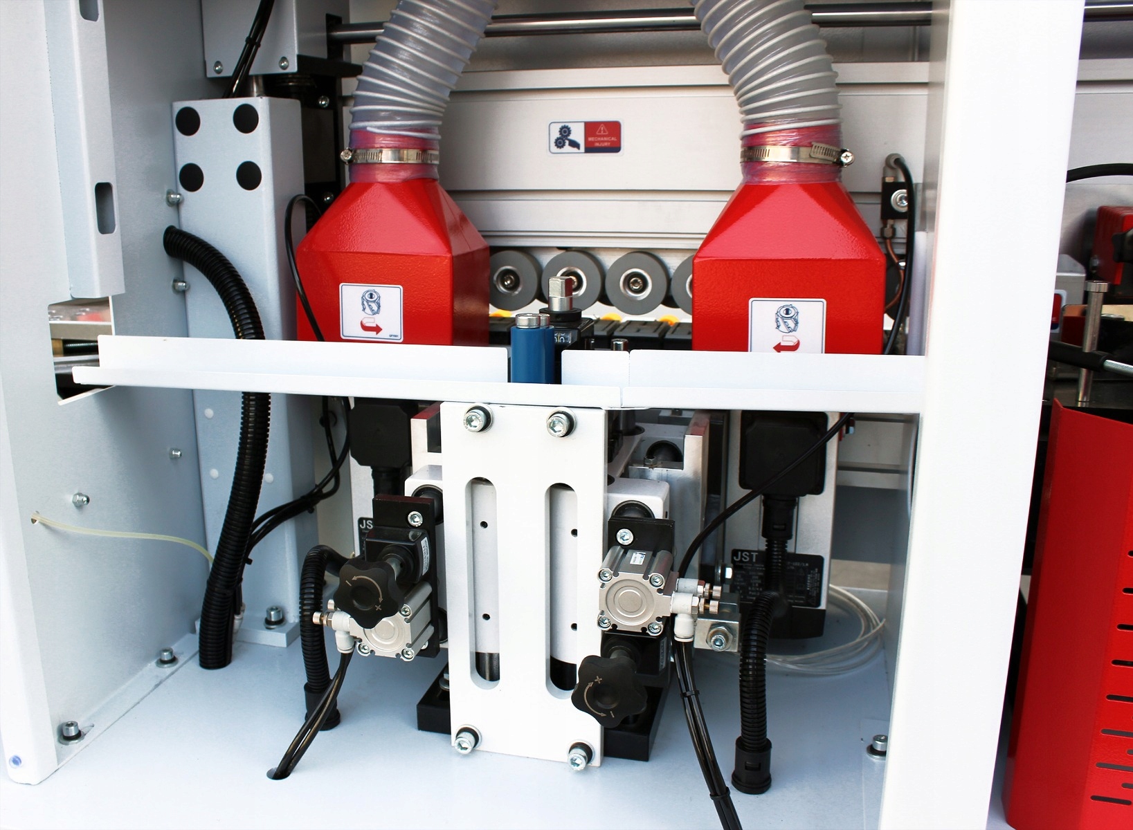 Машина рассчитана на использование двух типов клея: ЭВА и ПУР. Стандартно оснащен двумя резервуарами для клея, что позволяет быстро заменять разные виды клея.