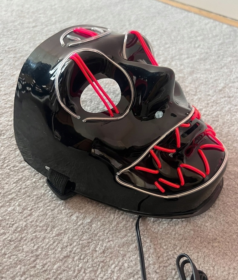 - К маске прилагается контроллер режимов освещения с длинным кабелем (около 110 см), его можно спрятать, например, в заднем кармане,