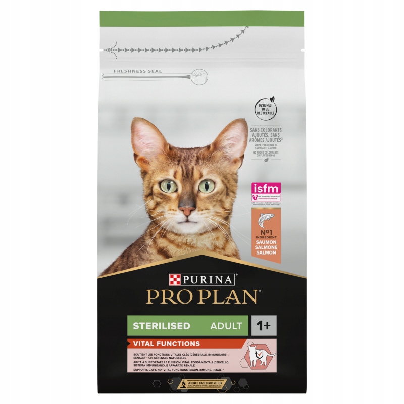 Purina Pro Plan Sterilized Vital Salmon — полноценный сухой корм для стерилизованных взрослых кошек.