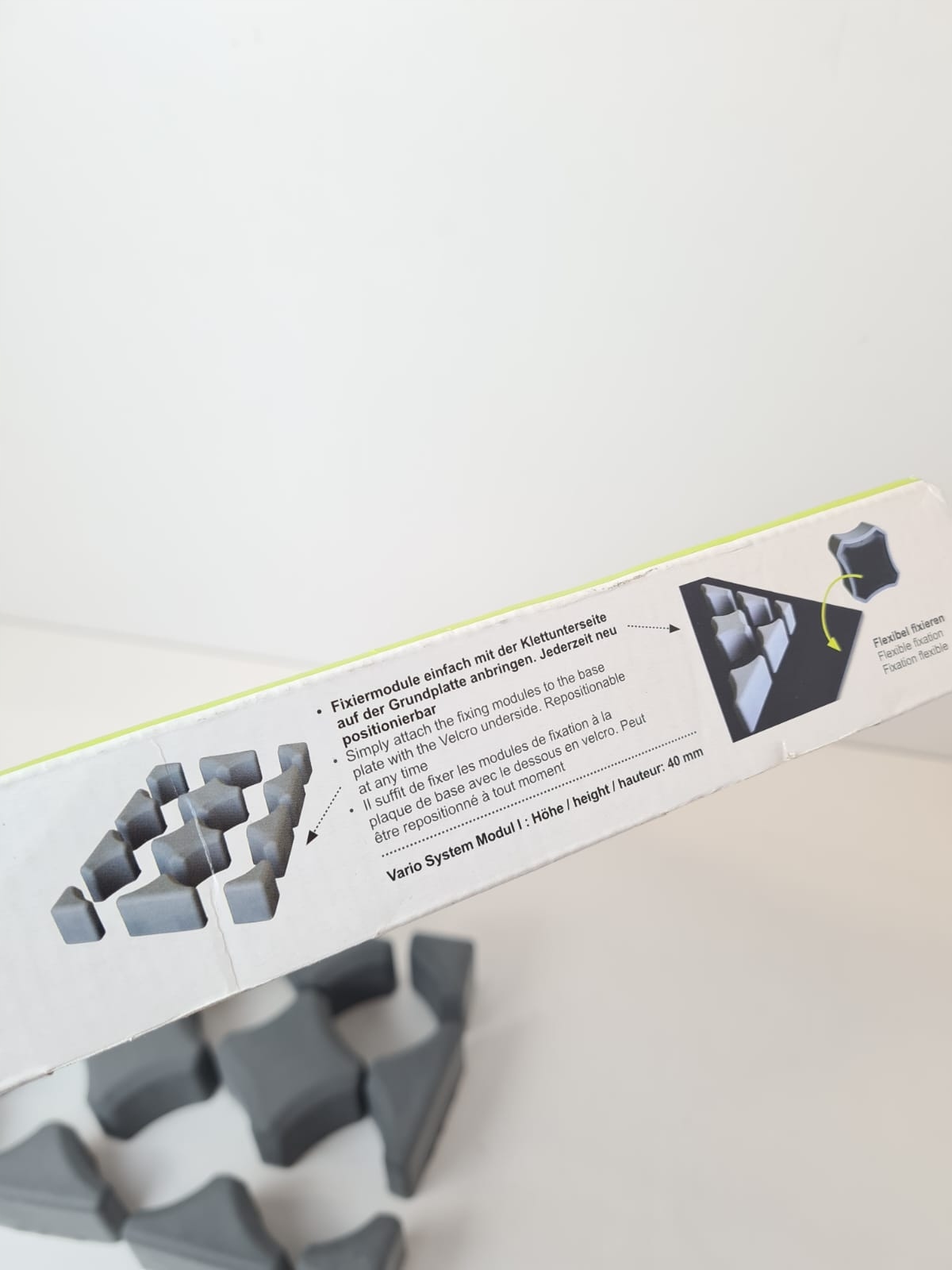 - Модульная система Vario: Благодаря модулям на липучке подставку можно свободно регулировать и расширять, изменяя расположение в соответствии с вашими потребностями.