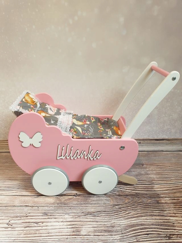 Деревянная коляска – идеальный подарок маленькой девочке на день рождения, крестины, годовалую девочку или другой праздник.