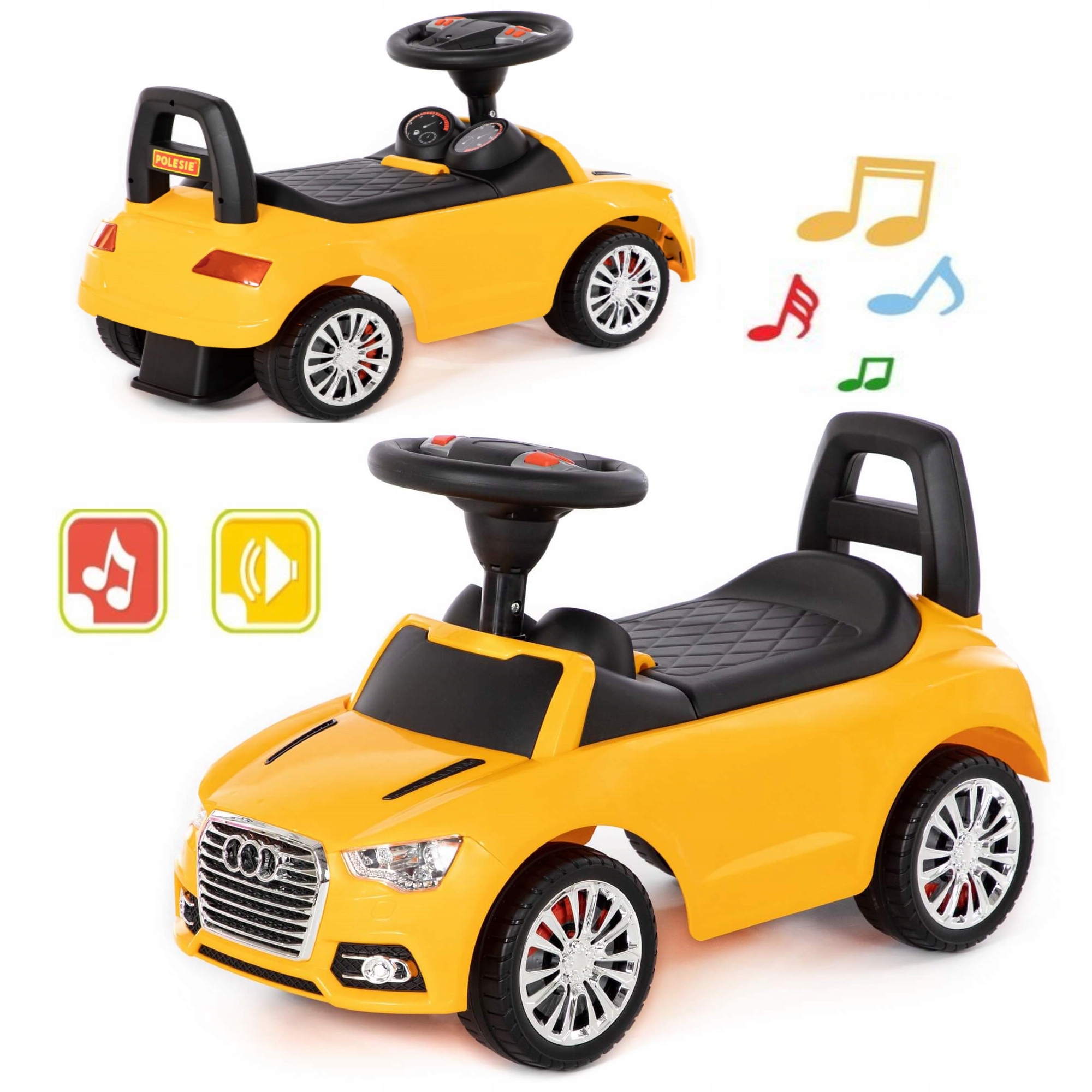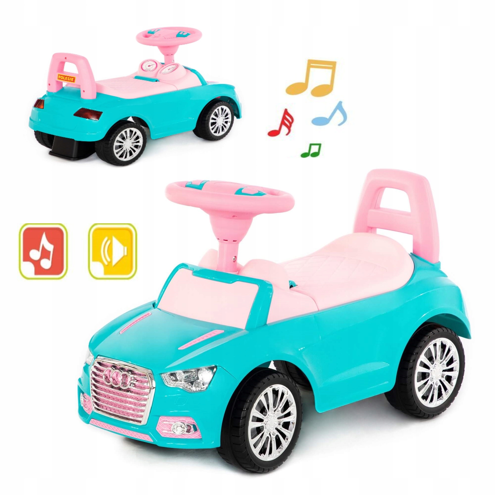 Super Car Ride-On со звуком Он имеет имитацию хромированных поверхностей, таких как диски, фары и решетка. Музыкальный руль с клаксоном, звуком работающего двигателя и сиренами (3 звуковых эффекта). Под сиденьем имеется отсек для хранения мелких вещей, необходимых маленькому водителю. Super Car Ride-On растет вместе с ребенком, машинку можно использовать как каталку или толкатель, с помощью которой ребенок может научиться ходить. Сиденье оснащено широкими колесами и удобным в управлении рулем. Сиденье имеет профилированный профиль, а спинка защищает ребенка от опрокидывания назад.