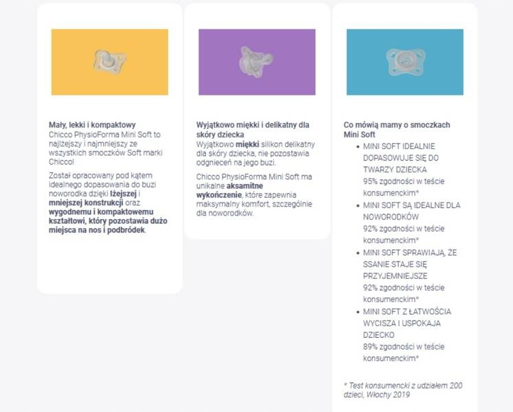 ✓ Соска Chicco PhysioForma Mini Soft изготовлена из 100% силикона: гигиенична и долговечна, выбрана из-за ее практичности.