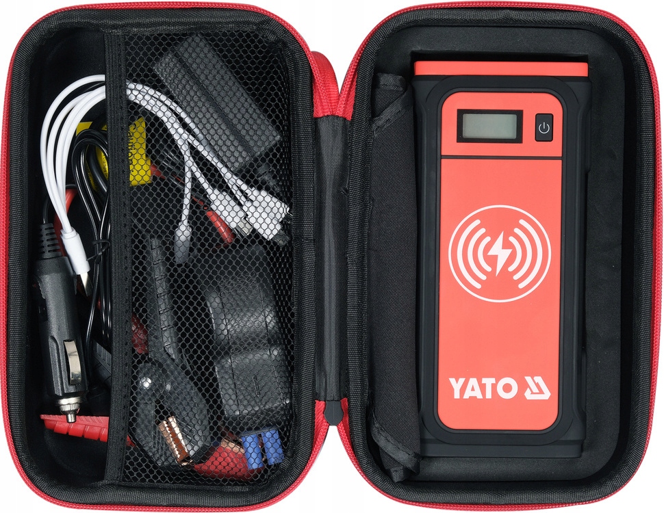 Портативное компактное устройство YATO для аварийного запуска автомобилей и питания портативных устройств.
