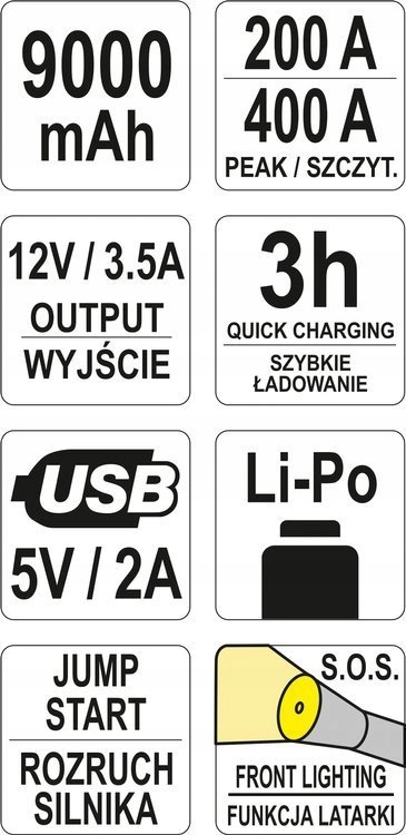 ПУСКОВИЙ ПРИСТРІЙ POWER BANK 9000MAH YATO
