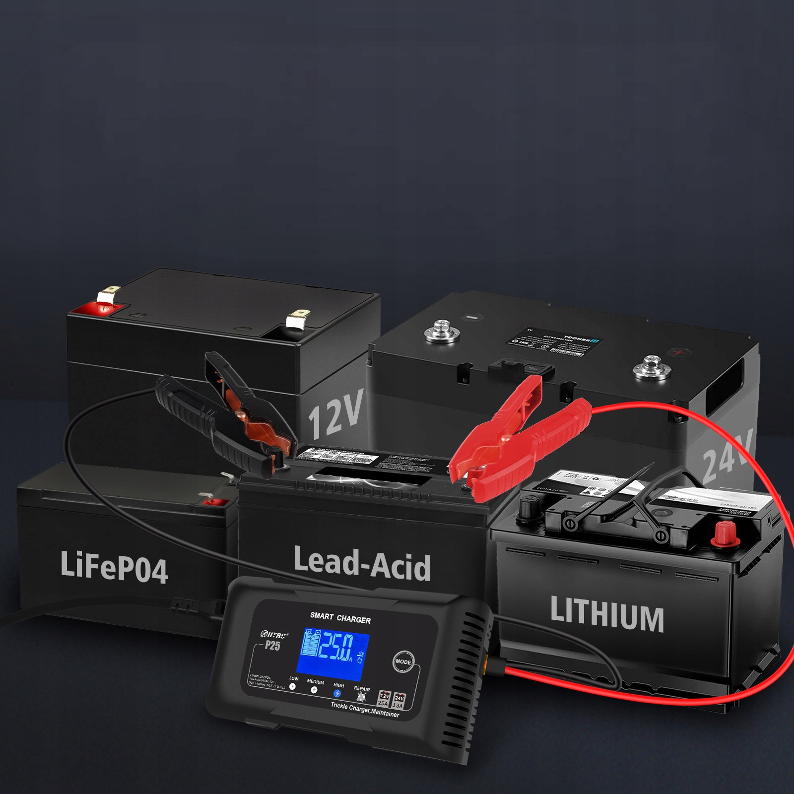 Зарядное устройство для литиевых аккумуляторов 25 А, Lifepo4 12 В - 24 В, зарядное устройство для свинцово-кислотных аккумуляторов (AGM/гель/SLA), устройство поддержания напряжения аккумулятора, зарядное устройство для обслуживания и десульфатации аккумуляторов для автомобилей, лодок, мотоциклов, газонокосилок.