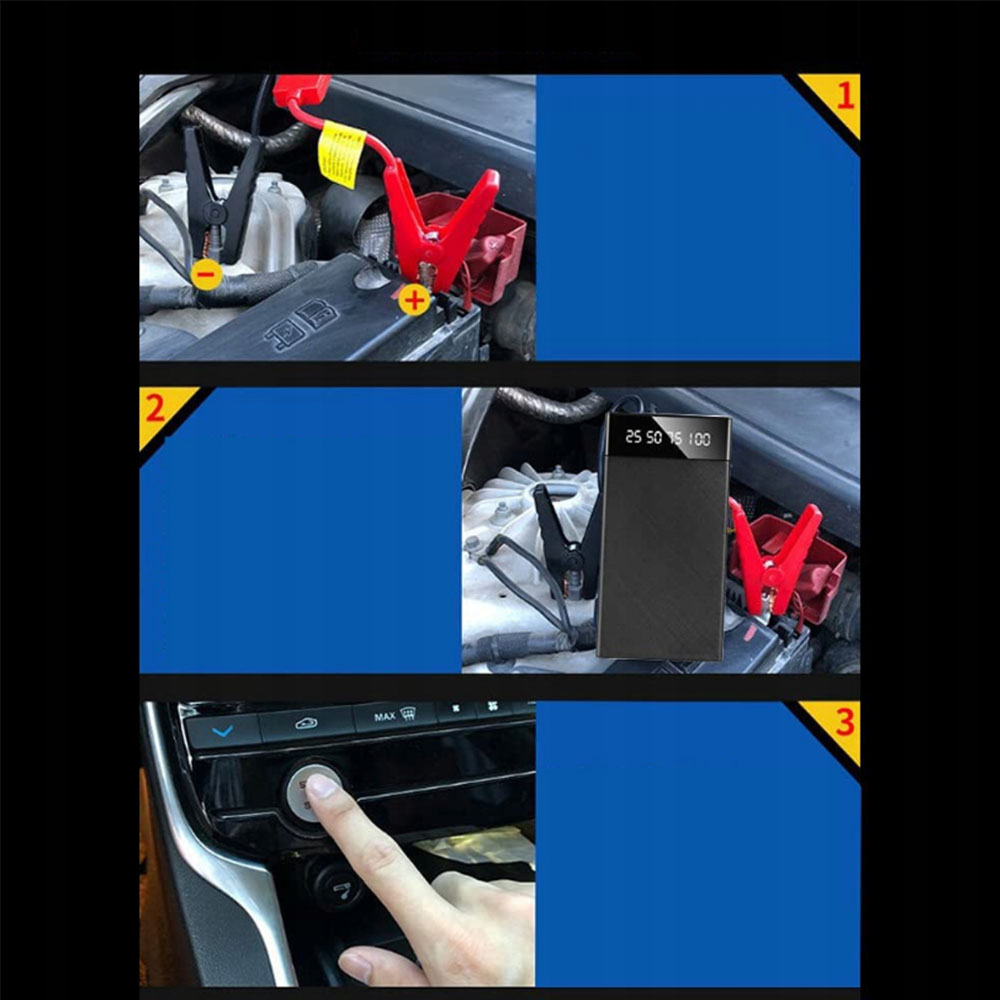 С помощью этого компактного, но мощного портативного литиевого аккумулятора. стартер емкостью 10 000 мАч, можно безопасно перезагрузить разряженный аккумулятор за несколько секунд. Пиковый ток 400 А гарантирует, что автомобильный стартер сможет запустить бензиновые двигатели объемом менее 2,0 л даже при низких температурах (от -20°C до 60°C). Для успешного запуска двигателя требуется всего 3 шага.