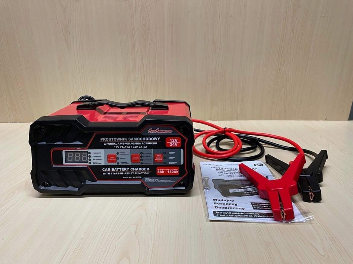 Выпрямитель для зарядки свинцово-кислотных и гелевых аккумуляторов емкостью 8Ач-180Ач. Он позволяет заряжать аккумуляторы напряжением 12 В и 24 В. Он имеет функцию помощи при запуске на 75 А для аккумуляторов 12 В. Имеет толстые, прочные кабели с удобными зажимами, металлический корпус и четкий ЖК-дисплей.