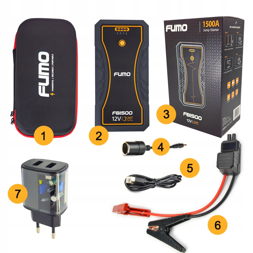 ➡ fumo boost pro 12v 1500a start -up device + fumo 2.4a зарядное устройство + корпус.