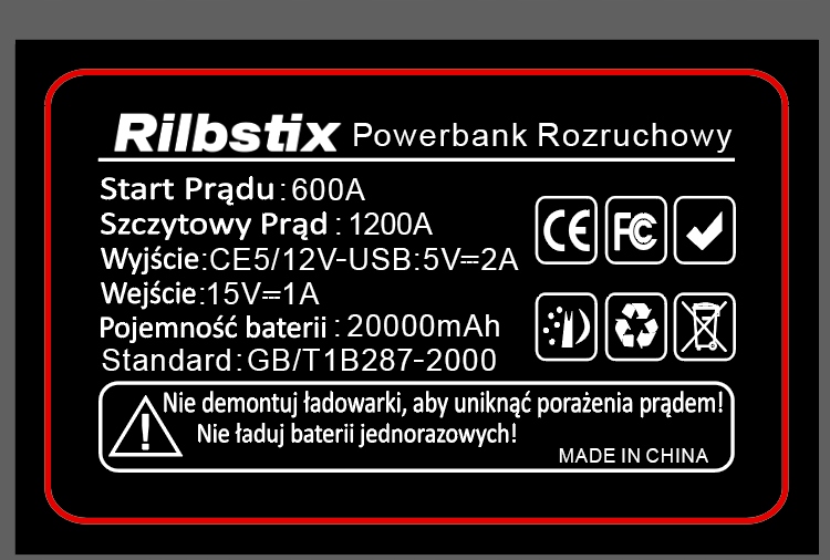 JUMP STARTER BOOSTER POWERBANK 20000 мАч, 12 В
