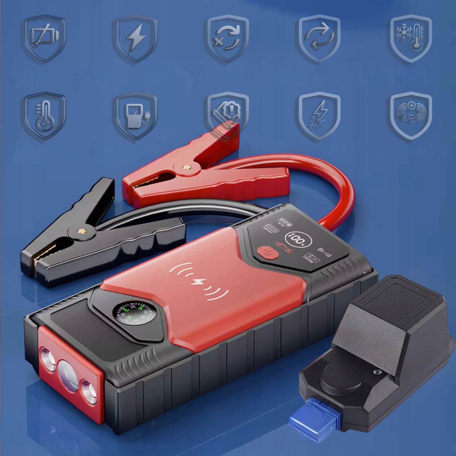 - Jump Starter имеет функцию беспроводной зарядки, которая может освободить ваши электронные устройства от оков USB-кабеля (умные устройства должны поддерживать беспроводную зарядку)