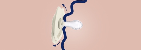 - динамическая резинка изготовлена из неоднородного слоя силикона, благодаря чему она растягивается и сжимается в соответствии с ритмом сосания ребенка.
