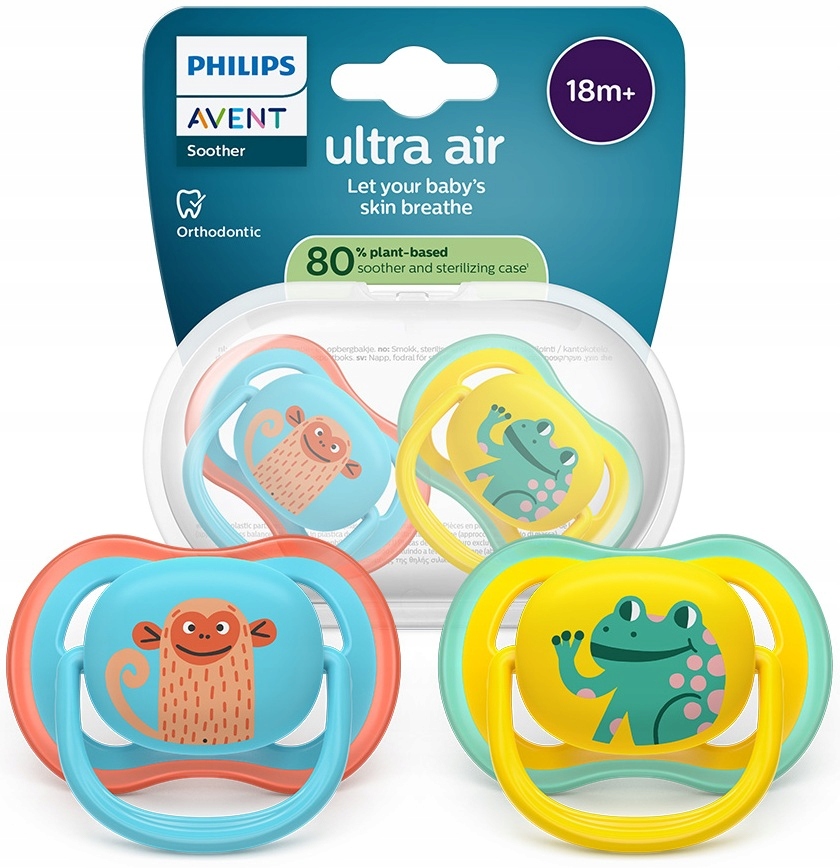 Успокаивает и пропускает воздух благодаря большим вентиляционным отверстиям. 9 из 10 родителей согласны: пустышки Philips Avent Ultra Air удобны для моего малыша.** Успокаивающее облегчение всегда под рукой, независимо от того, кто присматривает за ребенком.