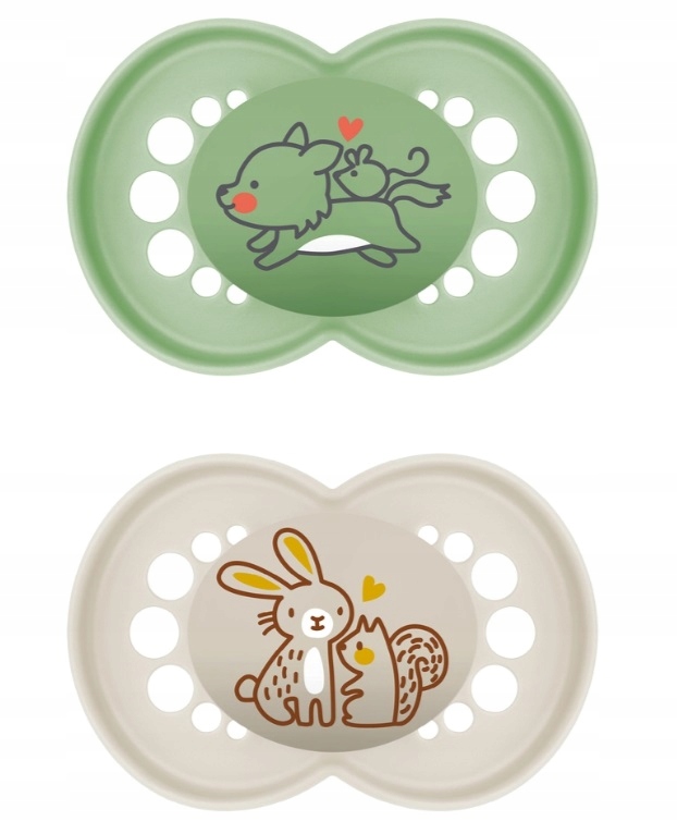 Оригинальный набор из 2 пустышек MAM (Волк/Заяц) — инновационное решение для детей в возрасте от 6 до 16 месяцев. Пустышки, изготовленные из материала биологического происхождения, являются первым климатически нейтральным выбором в предложении MAM. Узкая симметричная горловина соски была разработана в сотрудничестве со стоматологами для поддержки здорового развития зубов ребенка, а силикон MAM SkinSoft гарантирует удобное прилегание ко рту ребенка.
